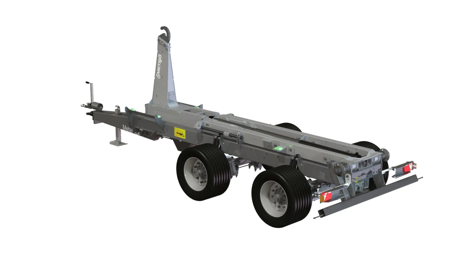 Vi använder en hydraulisk säkerhetsstödbalk bak som kan skjutas ned i marken vid växling för reducerad negativ kraft på traktorn. Vi rekommenderar att säkerhetsstödbalken är 10 cm ovanför marken vid växling så att man kan rulla under växlingsprocessen. När containern rör rullarna komprimeras hjulen och balken når marken när den negativa kraften är som störst.