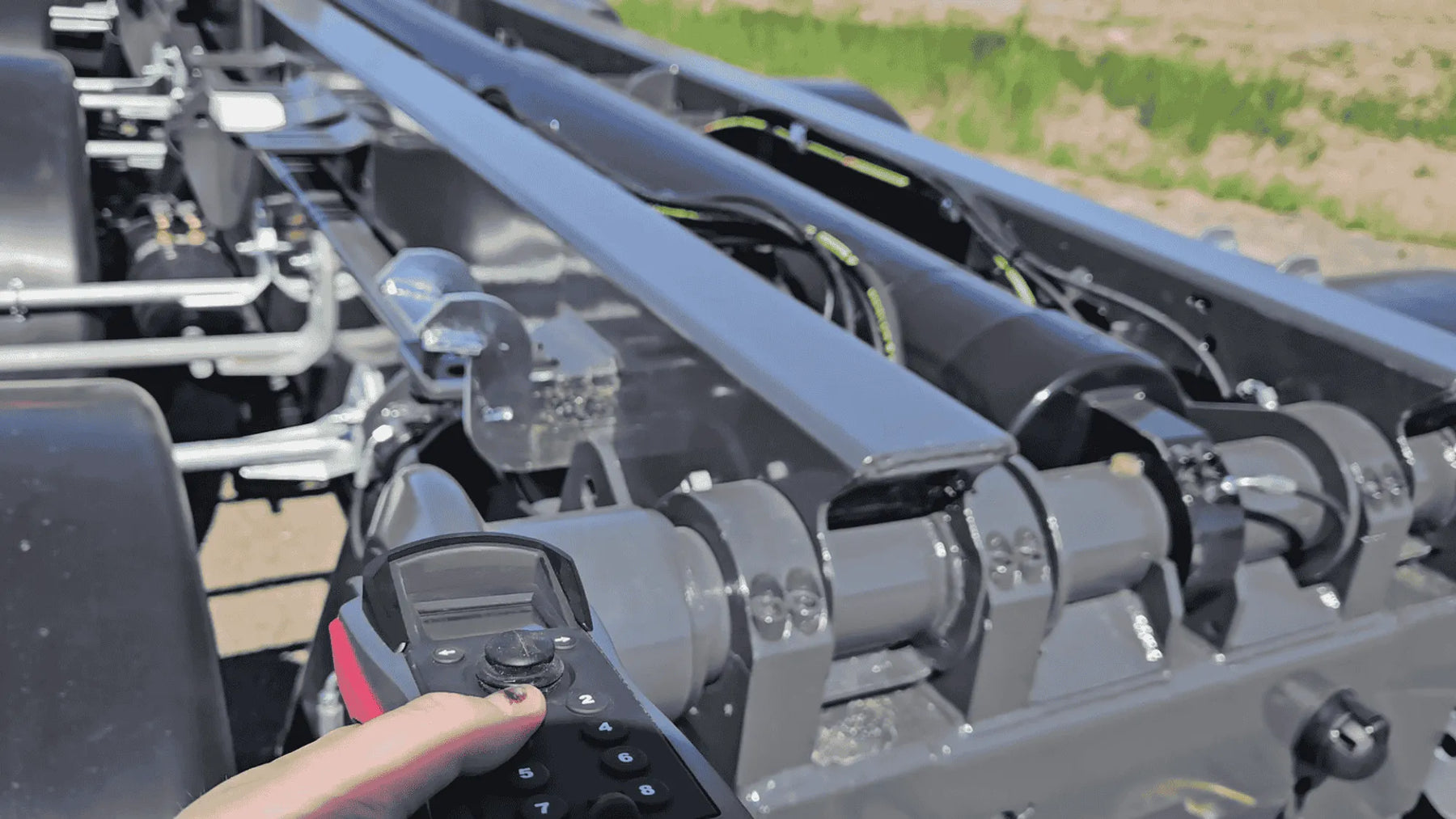 Vi använder en hydraulisk säkerhetsstödbalk bak som kan skjutas ned i marken vid växling för reducerad negativ kraft på traktorn. Vi rekommenderar att säkerhetsstödbalken är 10 cm ovanför marken vid växling så att man kan rulla under växlingsprocessen. När containern rör rullarna komprimeras hjulen och balken når marken när den negativa kraften är som störst.