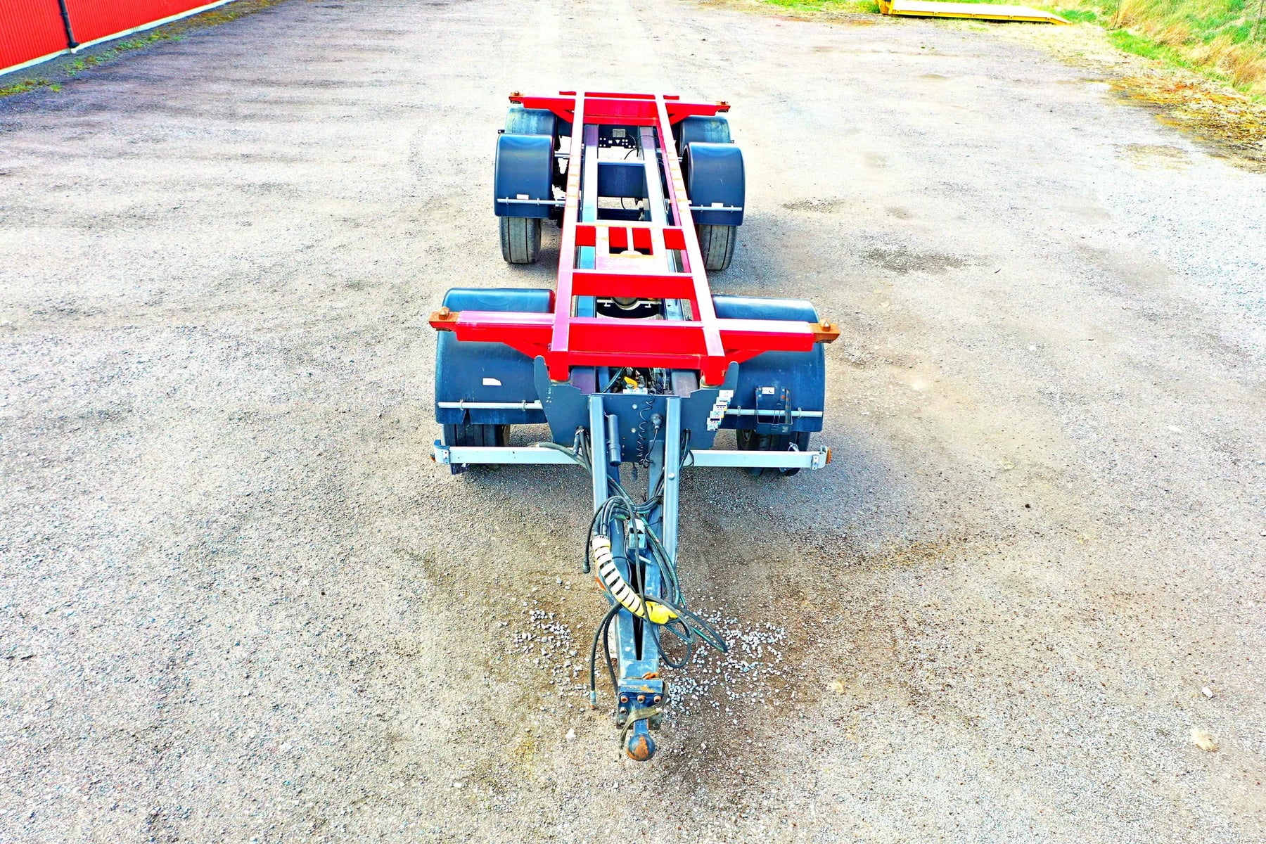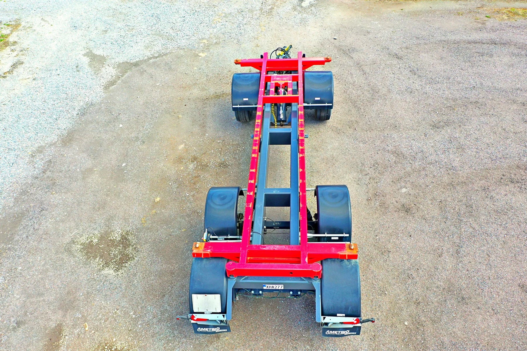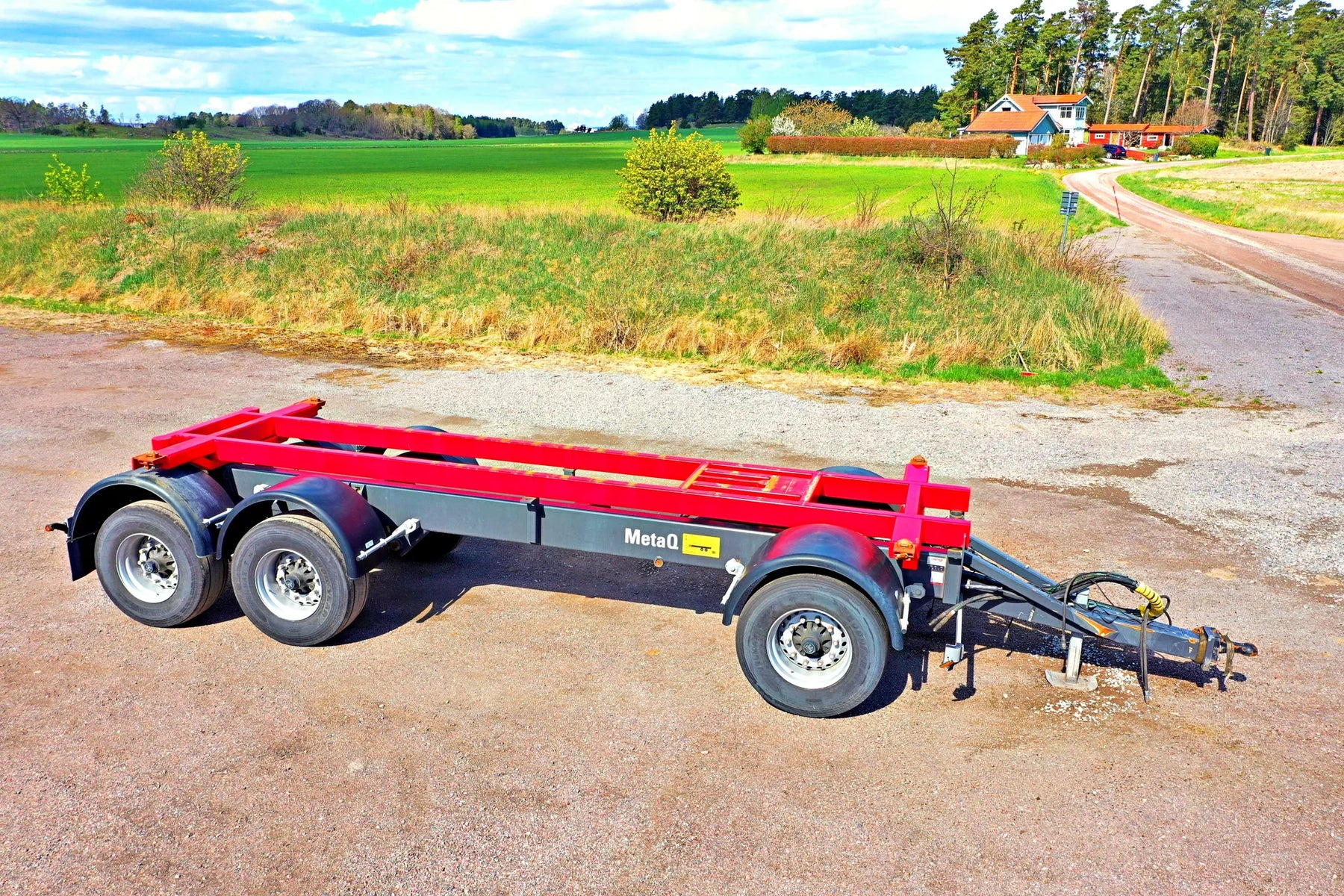 På alla våra vagnar med MetaQ systemet kan man byta flak, och på så sätt utnyttja chassit året om i skörd, dumperkörning, gödselkörning, maskinflytt och baltransport. I flakbytet höjs chassit 35 cm med den hydrauliska fjädringen och sprintarna i tipplederna lossas. Redskapsben sätts i flaket och chassit sänks sedan ner. Klart för byte.