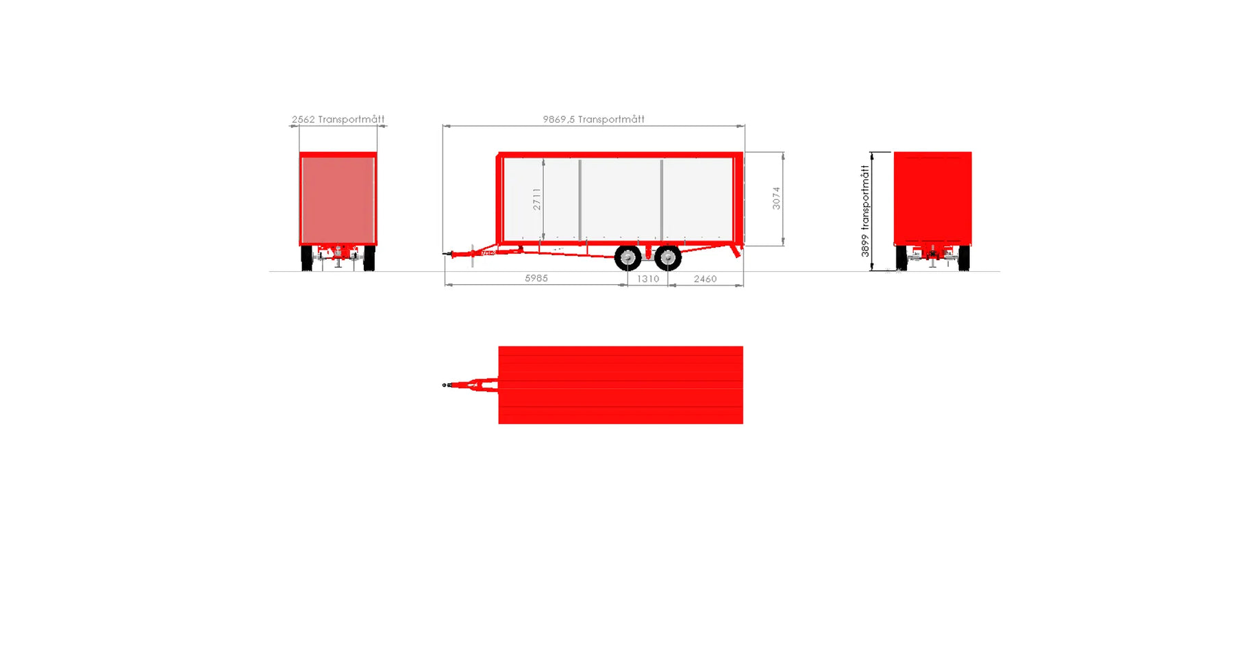 Artikelnummer komplett: 155626 Hjul 355x18 AgriTrailer Dia 890 Bredd 355 Flakhöjd 990mm Plåt Brinell 355: Tjocklek Botten 4 mm. Flaklängd 8100mm, Bredd 2550 Pendelboggi cc 1310 mm, Max belastning 9 ton/axel Avstånd över navflänsar 2000 mm. Ytbehandlas enligt KTL- metoden, svart Axel profil 120. Anslutning 220x275x8 mutter öppen Bromsar: hydrauliska på alla hjul - enligt VVFS 2003: 20, 5 Kap. 12 § Automatbromsarmar AGS. Max 110 bar hydraultryck. Skyddsplåt förhindrar smuts i trumma Belysning enligt TSV Diod 12/24 Volt 7 pol Fäste för valbart främere drag Fäste för bakdrag El kontakt bak 7pol Flakplan stålplåt 355. Invändig längd 8000mm, Invändig fri höjd 2700mm Presseningsgardin: vänster, högersida Hendersson i top Gummi fjong i botten.öppen del 7440 Framstam-tak i stålplåt Bak öppen mellan stolpar 2340mm Färg Metsjö röd Chassivikt 4000 kg, Teknisk belastning 21 000 kg, Nyttolast 17 000 kg Ytbehandling: Förbehandling med alkalisk avfettning och blästring Sa 2,5 Karosseri kittas. Lackerat enl. ISO 12944 A3.09. Färgsystem: Epoxiprimer 2 x 70 µm. Täckfärg: Polyuretan 1 x 60 µm totalskikt ca. 200µm. Korrosivitetklass C4 L Kringutrustning. Bultbart bakdrag + eluttag 7 pol, 105366 ........ Beakta Hjul skifte spår vidd