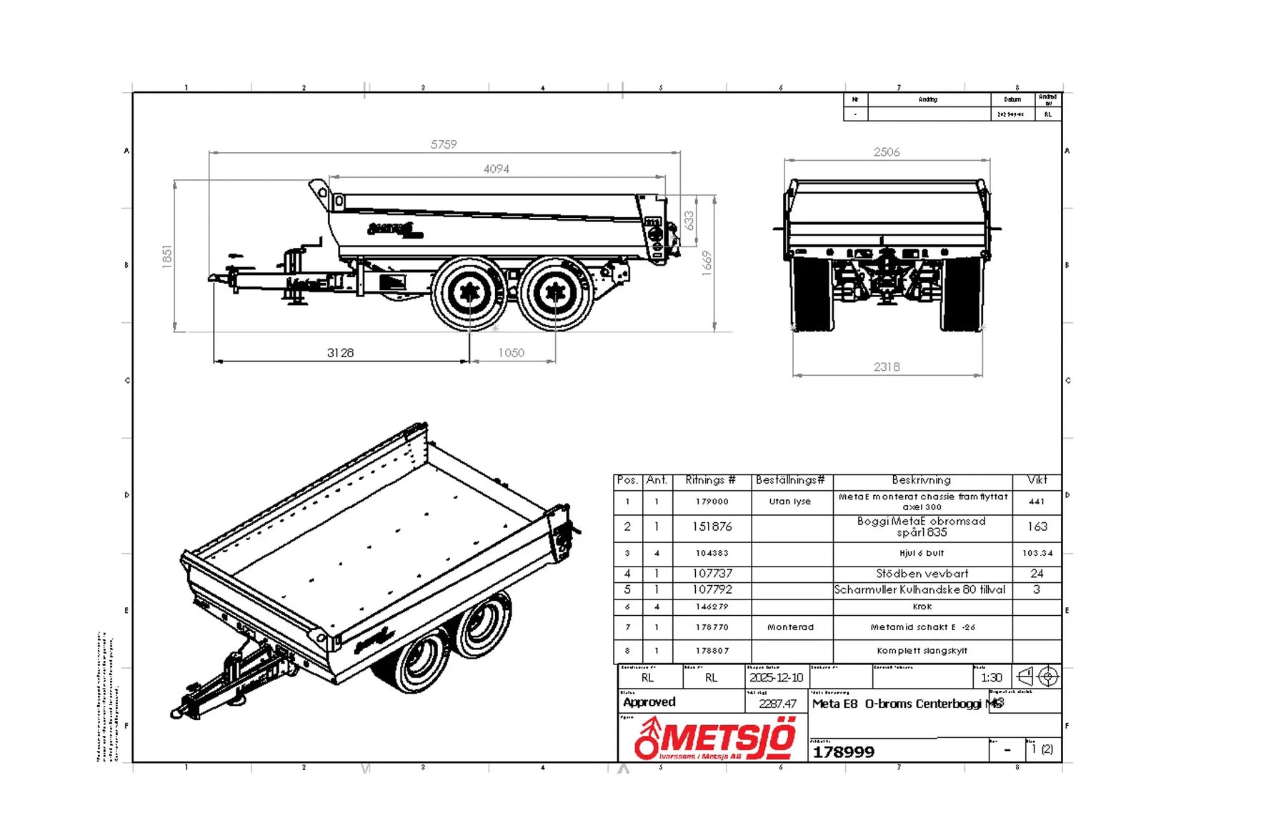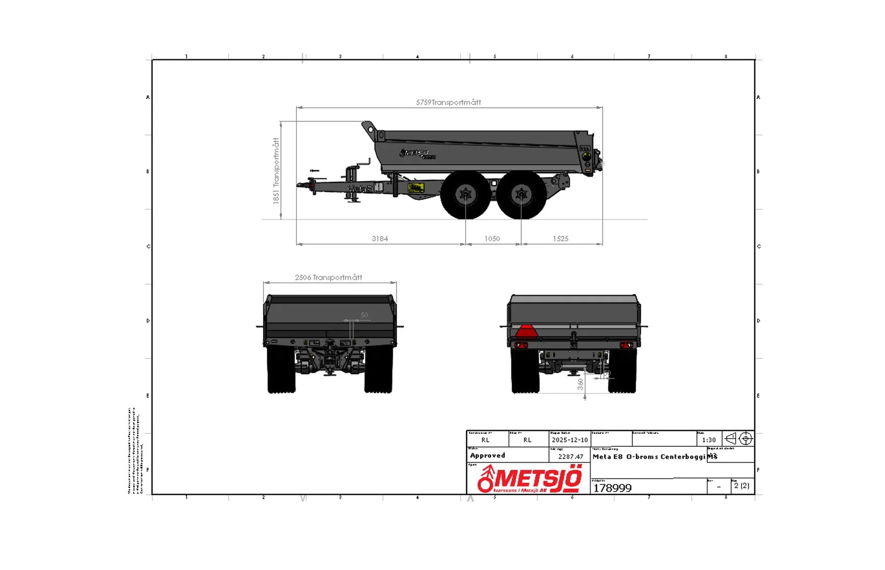 Max belastning 4,5 ton/axel i 40 km/H. 5,5 ton axel i 30 km/H