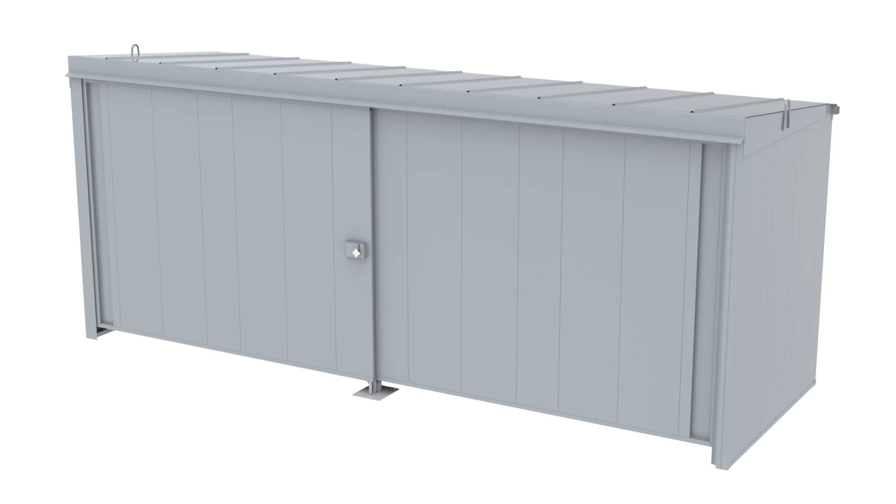 Invändigt mått B.H.D 6800x2610x2125 mm. Transportmått B.H.D 7110x2950x2500 mm. För utomhusbruk. Konstruktion av 1,5 mm stålplåt intermittent svetsad, utan golv. Vikt 1500 kg. Godkänd försäkringsklass 2. Låses med hänglås, en låspunkt. Portblad med avhakningssäkring. Ventilation "självdrag" under takfot och dörrblads undersida. OBS! SKOTTGENOMGÅNG ELLER HÅLTAGNING ÄR TILLVAL OCH MÅSTE ANGES VID BESTÄLLNING. ÄVEN ARMATURBALK ÄR TILLVAL OBS! Ytbehandling enligt ISO 12944: Förbehandling med alkalisk avfettning och blästring Sa 2,5 Kittning sker där konstruktion ej medger helsvetsning C4-Med. Totalskikt ca 200µm. Epoxi grundfärg, Polyuretan täckfärg ger 15 år Inv. skåp C3 enl. Metsjö standard. Bildar en yta som väl bibehåller glans och kulör samt är lätt att rengöra.