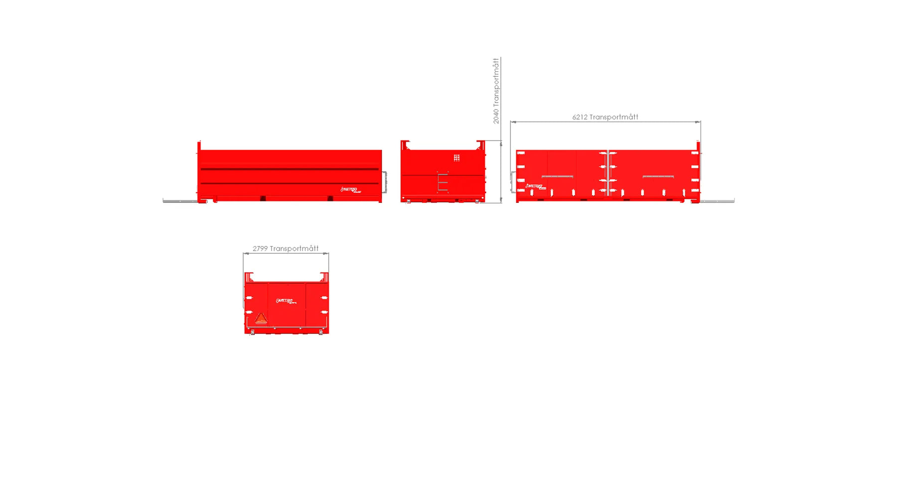 Stahlblech Brinell 355 Stärke Boden 5 mm Verschleißblech Brinell 450 Stärke Seite 3 mm - fest Stahlblech Brinell 355 Stärke linke Seite 3 mm Manuelle Heckklappe oben eingehängt Sichtfenster in der Vorderwand 500x2000 (perforiert) inkl. Abdeckplatte Die linke Seite ist öffnede, Höhe 1500mm, Länge der Seiten 2800mm Schnallen 7 St. pro Sektion Vorderwandhöhe 1500mm Stabilitätstange zwischen die Seiten Universalhaken zur Ladesicherung aussen 6St. pro Seite Farbe Rot, lackiert gemäß Metsjö Standard Gewicht 2 125 kg