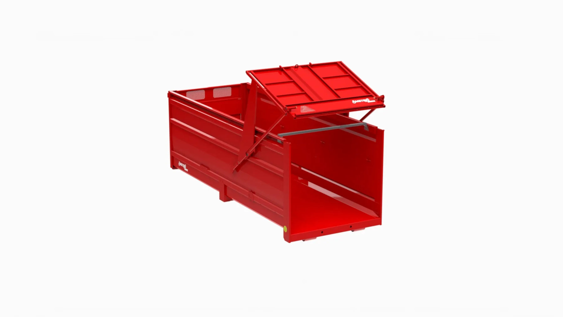 Hook height 1450mm, Contanier standard SIS 3021 Heavy duty Steel 450 Brinell: Container bed 3,2 mm and sides 2 mm The bed sides are flanged 2x45" Automatic tailgate - opens automatically when the body is tipped The opening can be delayed Removable upper part of the front wall 450 mm Height = loading area 2 500mm (with tires diameter 1400 total H of the trailer is 4m) Conical body 100mm Standard without a roof Consols for mounting an extra sealing for the rear tailgate Consols for mounting a hydraulic tailgate Consols for mounting a roof/side extensions Colour red, painted according Metsjö standards Weight 2 920 kg Equipped with: Removable part H450mm fornt wall, 124625-Röd