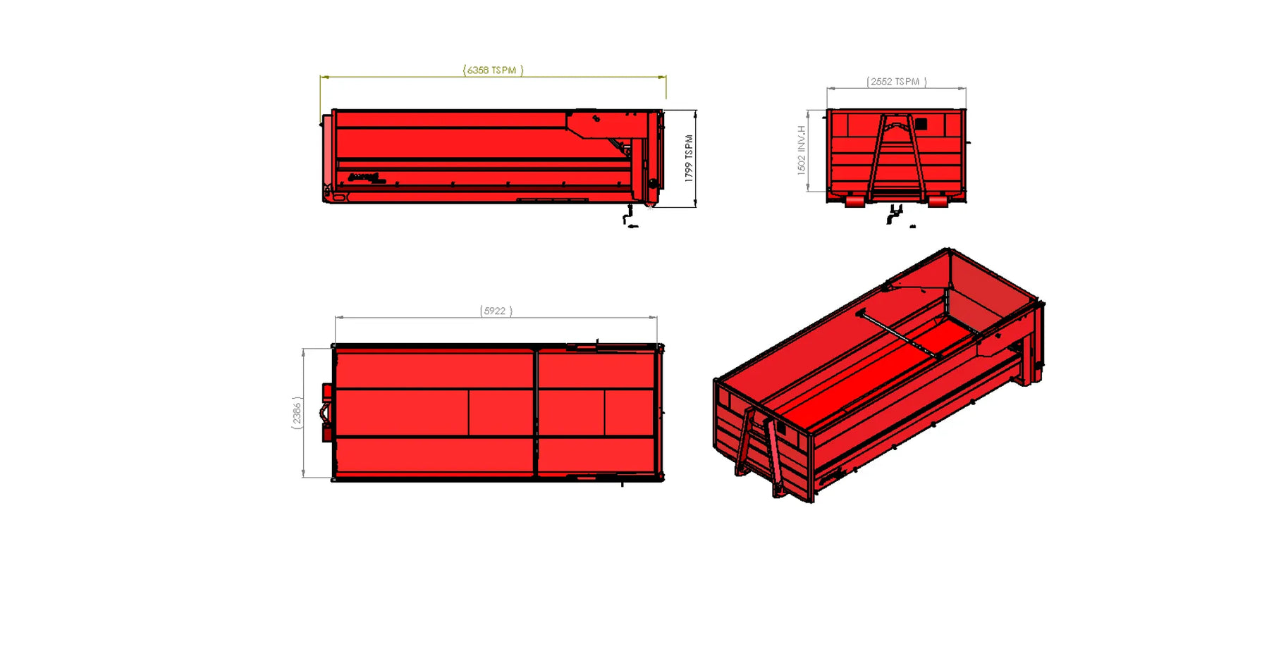 Tillval för Eucon hooklift body L6000 H1500 W2550 25m3