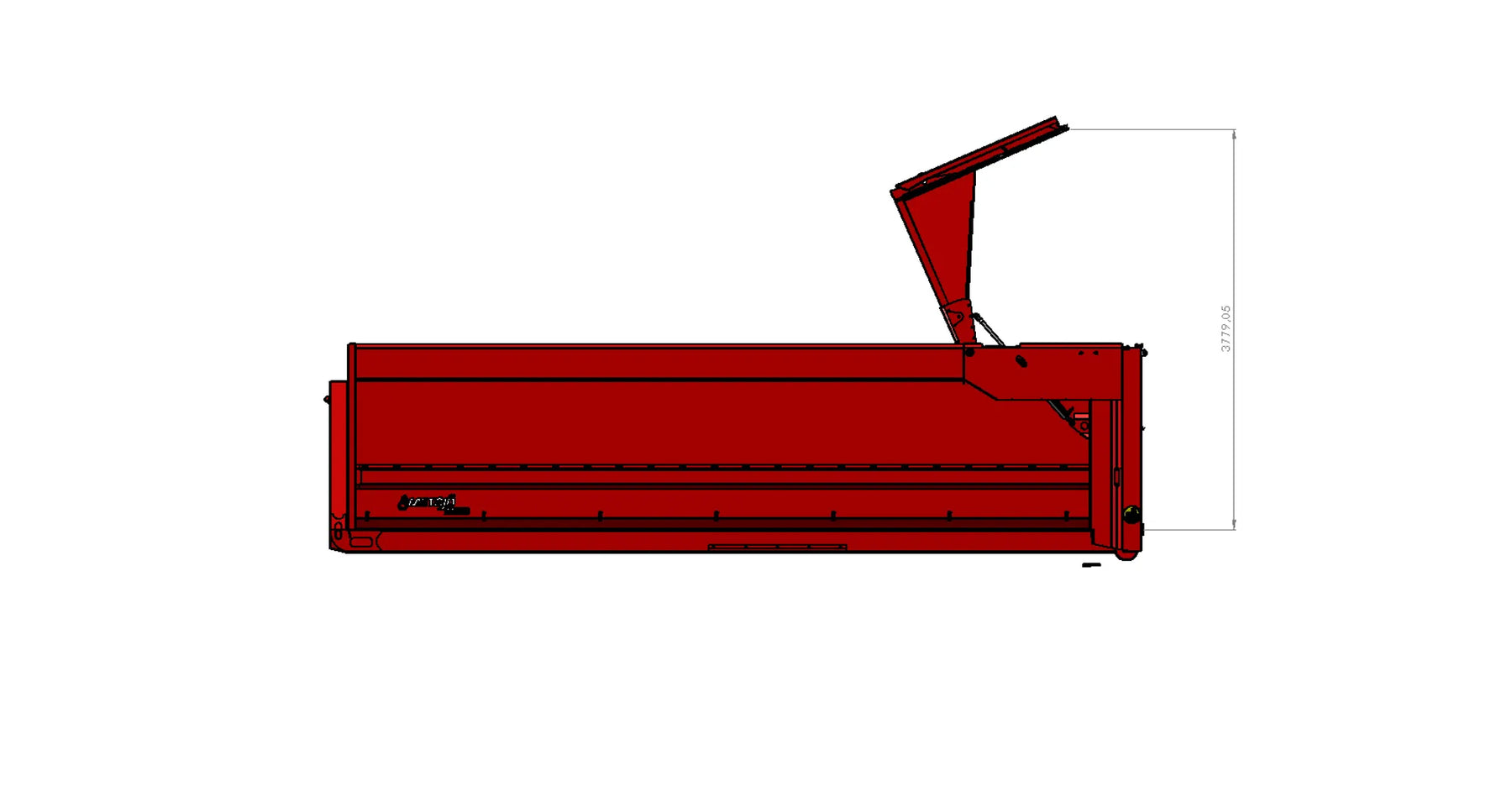 Hook height 1450mm, Contanier standard SIS 3021 Heavy duty Steel 450 Brinell: Container bed 3,2 mm and sides 2 mm Hydraulic tailgate H1750, high opening angle 130". Drop-proof Perforated sight window 500x2000 with cover plate Hooks for load securing - outside The hoses are mounted on the hook (requiers a DA hydr.outlet on the hook-lifts hook) Colour red, painted according Metsjö standards Weight 2 600 kg
