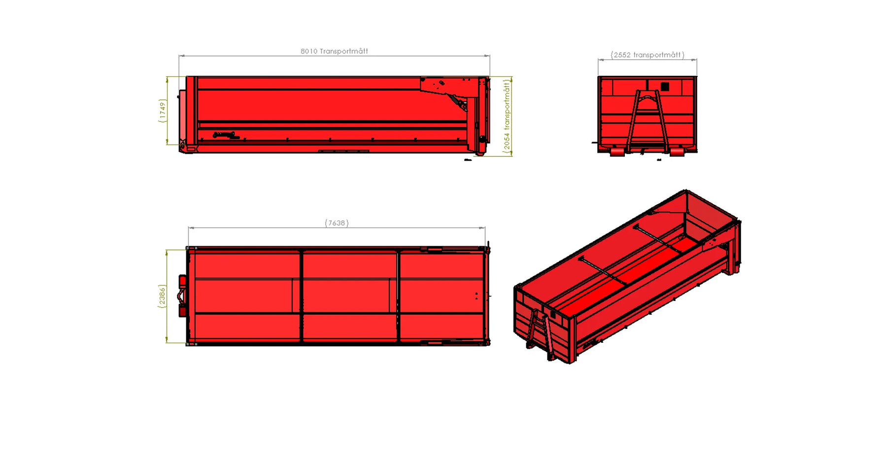 Tillval för Eucon hooklift body L7720 H1750 W2550 32m3