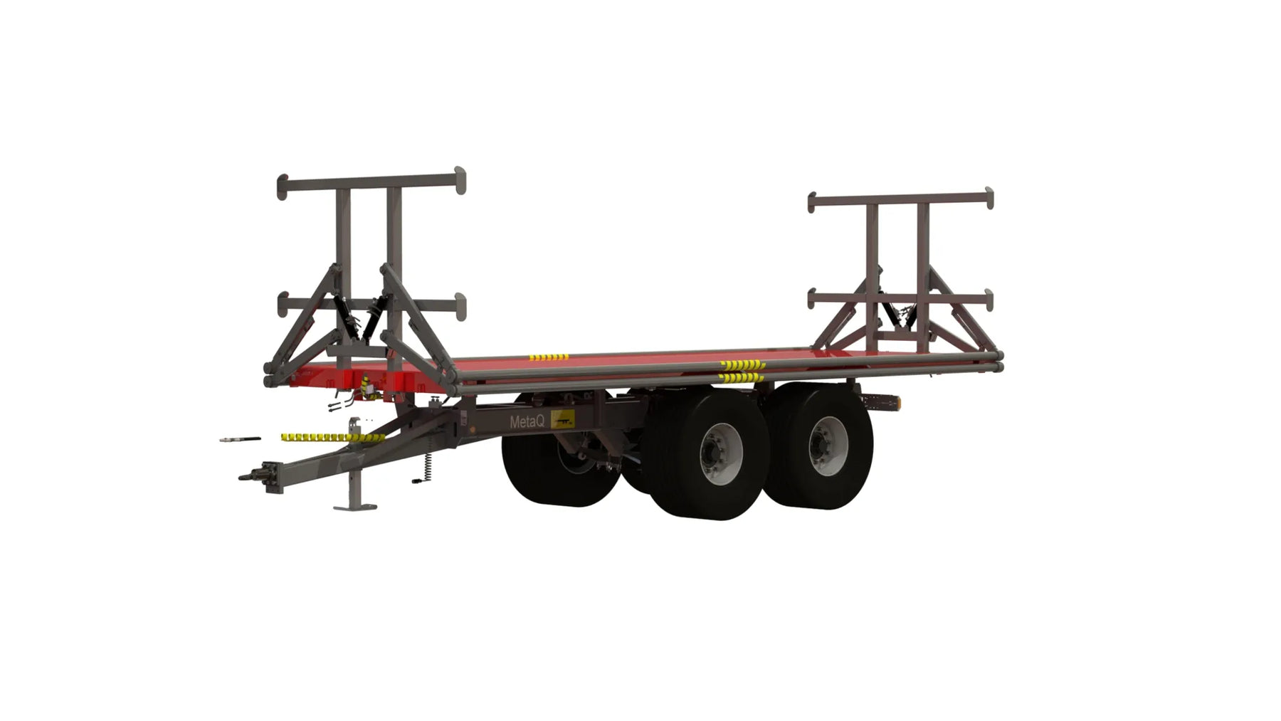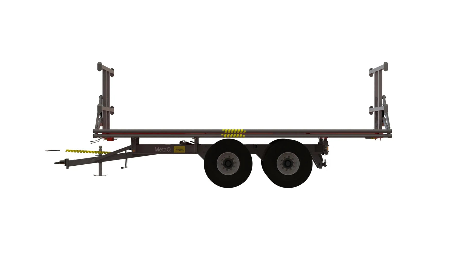 On all our wagons with the MetaQ system, you can change the container/ flatbed, and in this way use the chassis all year round for harvesting, dumper, manure driving, machine moving and bale transport. In changing the body, the chassis is raised 35 cm with the hydraulic suspension and the axles in the tip joints are loosened. Tool legs are placed in the container body and the chassis is then lowered. Ready for change.