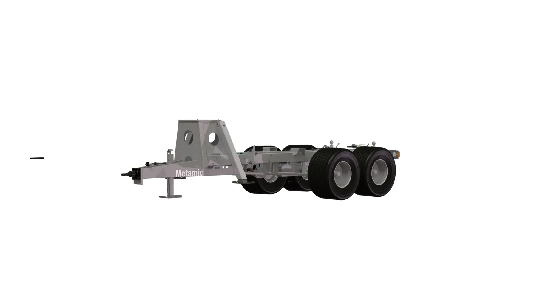 Item number 152570 Crane atachment type Moheda M65 Supporting legs with a double-acting hydraulic function with a hydraulic lock Pendulum bogie distance 1050 mm, Maximum load 6 tons per axle Flange width 1850 mm. Coated according to KTL-method, black Rim connection 161x205x6 open nuts Hydraulic brakes: on all drums, According VVFS 2003:20 Manually adjusted brake arms. Maximum hydraulic pressure 110 bar Cover sheets stop dirt entering the brake drums Back tipping, tipping angle 55º, Oil volume 10L /210 bars Lights according TSV LED 12-24V 7 pol. Prepared console for mounting an axle lifting system Prepared console for mounting different drawbars Colour Metsjö grey Prepared for MetaMid/MetaNo bodies Chassis weight 1 870 kg, Technical load 15 000 kg, Payload 13 130 kg Surface treatment: chemical degreasing, blasting SA 2,5 The body is puttied. The colour of the chassis is grey Painting according ISO 12944 A3.09. Colour system: Epoxy primer 2 x 70 µm. Top coat: Polyurethane 1 x 60 µm overall layer 200µm. Corrosion category C4 L Equipped with: Rear hydraulic outlet 1/2 flow, 106643 x 2 pcs. Rear hydraulic outlet brakes (oil) for a coupled trailer, 106642 Rear coupler bolt-on clevis + rear electrical socket 7 pol., 105366