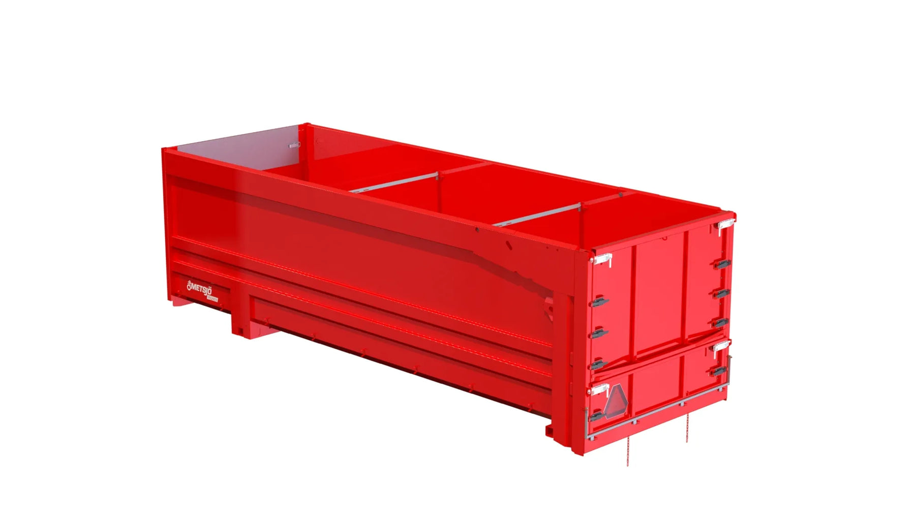 Slitplåt Brinell 450: Tjocklek Botten 3,2 mm, Sida 2 mm Bakläm: typ mekanisk "Topphängd" Spridarläm Siktläm i framstam 500x2000 perforering inkl. täckplåt Bindningspunkter utsida Fästen för redskapsbytarben Lackas Metsjö Röd, karosseri kittas enligt Metsjö standard För MetaQ 75 / Olympia 75 chassi Vikt 2480 kg