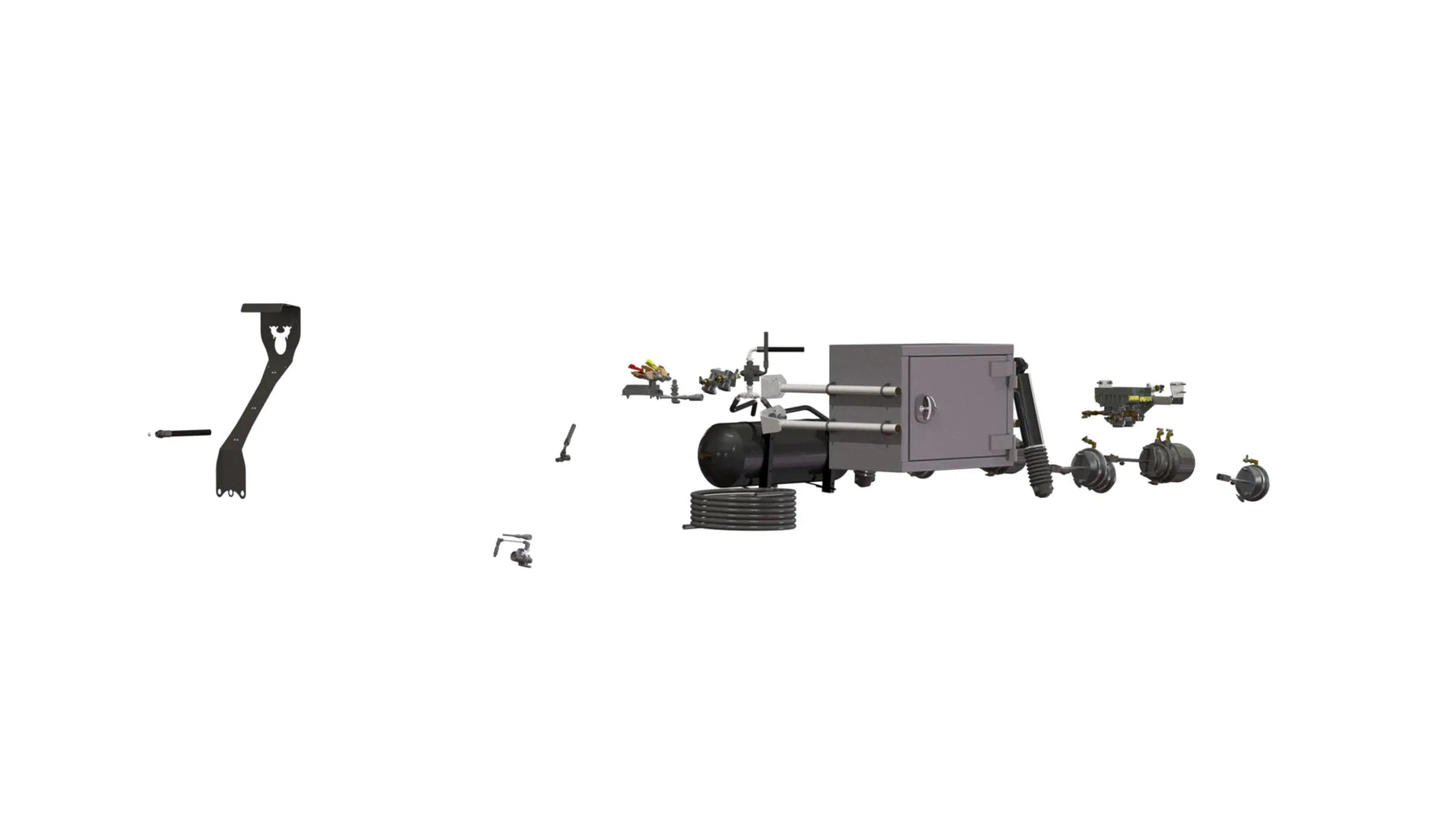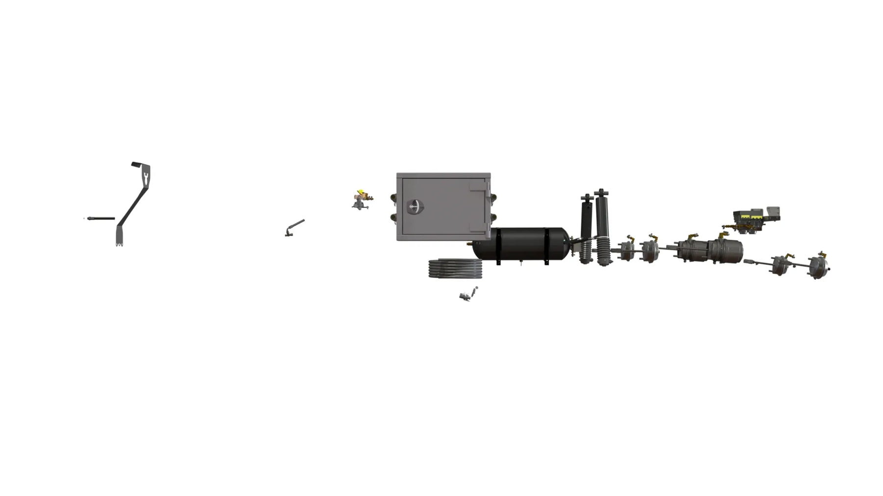 Slanghållare Luftbromsar Bromsreduceringsventil lastavkännande LUFT Lastvikt avläsning OptiLink Toolbox B 700 D 400 H 510 Dörr med infälld låsmekanism nyckelås, uttag för extra hänglås Packning i dörrblad.Vikt 55 kg Boggilift kom.kärl enkelverk uttag med funk flytläge Dubbelverkande cylinder lyfter axel + oljan fördelas på aktiva axlar Lyftkraft 25% av vikten som vilar på axlar Systemet har överströmningsventil ställd på 300 bar dränerad via friretur (bromsystemets). Det är av storvikt att man kör med hydraulfunktion sk flytläge när hjulen är i marken för att motverka dieselverkan i cylinder. Man kan ha flera axlar lyftbara på vagnen men man kör med en axel lyft i taget
