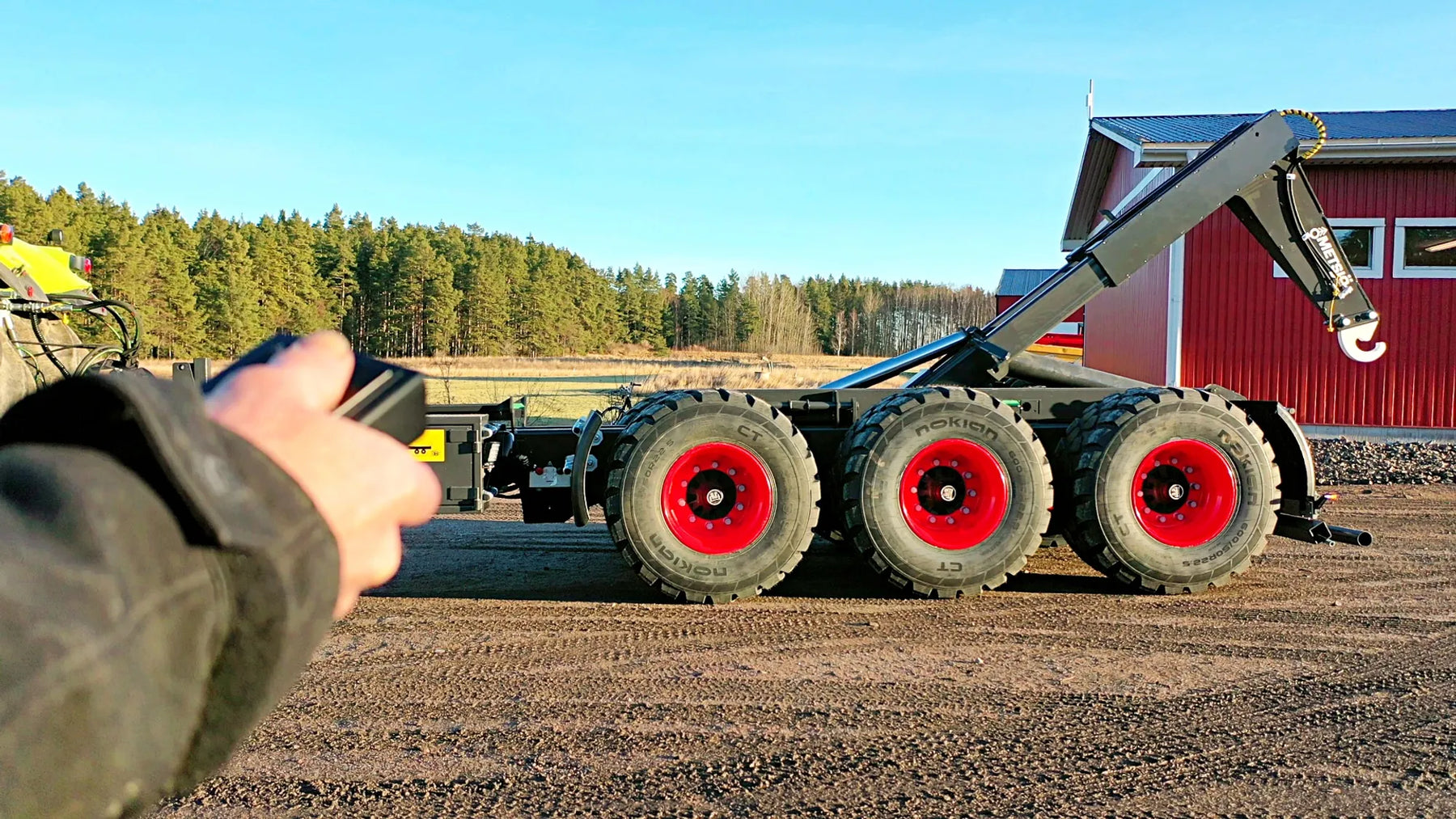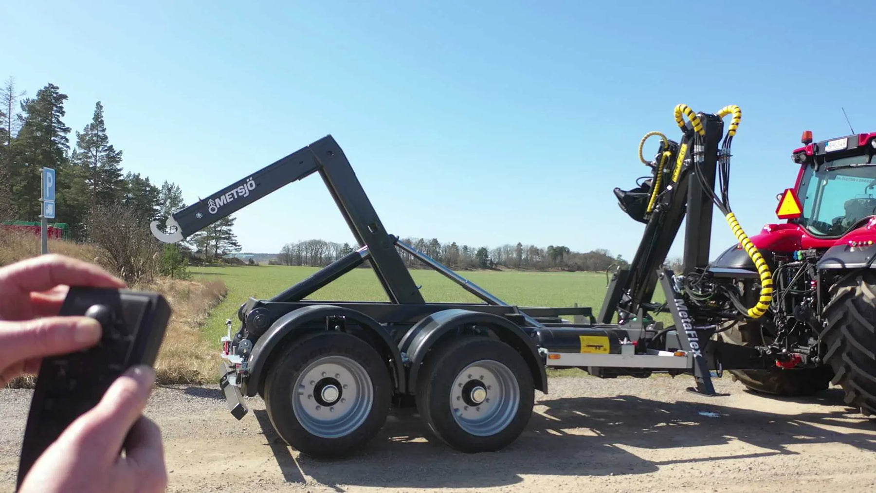 3 slangar + elkabel till traktor Trådlös manöverbox proportionalstyrd Från Traktor hydraulik matning LS tryck ¾, och retur 1 tum, signalledning 1/4 + Ström-kabel + TSV (trafiksäkerhetskabel) + broms Ökat Flöde Max 230 liter/min System för 12volt Trådlös envägs kommunikation dragare-vagn (radiostyrd) Radiosändare DJ803 10 knappar Hållare för radiosändare/laddkabel Databox IP klassad - kan programmeras till olika funktioner, exempelvis loop tipp och baklämsöppning Funktioner standard. Propotional styrda ventiler: Tipp-Växling. Lasthållarventil ..(overcenterventil ) För mjuka rörelser standard Skjutbart torn. ca 60 Liter/min Hydrauluttagbak. art 109160 ca 60 Liter/min Styrlås (hålventil) där inte styrning är standard Boggilift (hålventil) art 107137 Flyttar olja - till + sida vagn höjs . Begränsad lyftkraft OBS valfri axel anges vid orderläggning Höjd-sidreglering av chassi Vänster - höger sida, art 117381 ................................................................................................................... Systemet Byggbart..(ej standard) Ex enge 2860 00A +funktion/perst Ramlås (dubbel verk funk) art 113578/113576 Tvångstyrdaxel (dubbel verk funk) art 113224 Ramstyrning (dubbel verk funk) art 102899 Hydrauliskt stödben art 117545 Ex enge 2860 00B Boggilift ytterligare axel. (Hålventil)